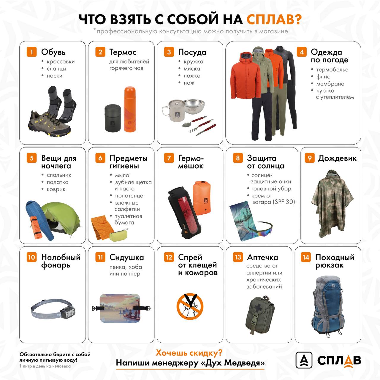 ✦ Вещи для ночлега - спальник, палатка, коврик